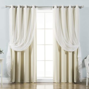 قد تبدو غرفة المعيشة ذات النافذة الفرنسية الكبيرة بشكل أفضل مع الستائر ذات الطبقات. على سبيل المثال ، يمكن أن تحتوي الستائر الثلاثية الطبقات على معظم الطبقات الخارجية مصنوعة من قماش بسيط فاتح اللون بينما تتكون الطبقات الوسطى والداخلية من ستارة من الدانتيل أو ثنى سميك على التوالي.